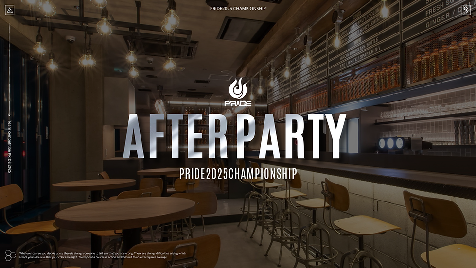 PRIDE2025 CHAMPIONSHIP終了後(19時予定)に会場近辺で50~80名規模の立食パーティーを開催いたします。